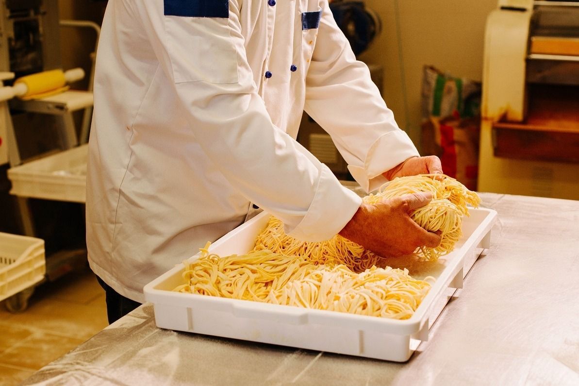 La pasta è realizzata con macchinari non industriali e una parte importante di lavorazioni manuali, per mantenere l’autenticità artigianale.
